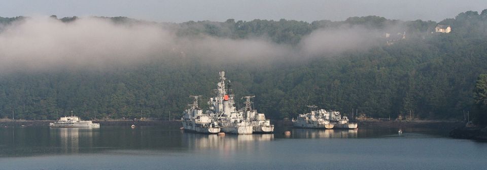 Un cadre naturel exceptionnel : l’anse de Penforn, formée par le méandre final de l’Aulne, offre un havre protégé, profond et abrité des vents. Ces atouts géographiques en font un site convoité par la Marine dès le XVIIe siècle, malgré un accès unique par le goulet de Brest, point faible en cas de blocus.